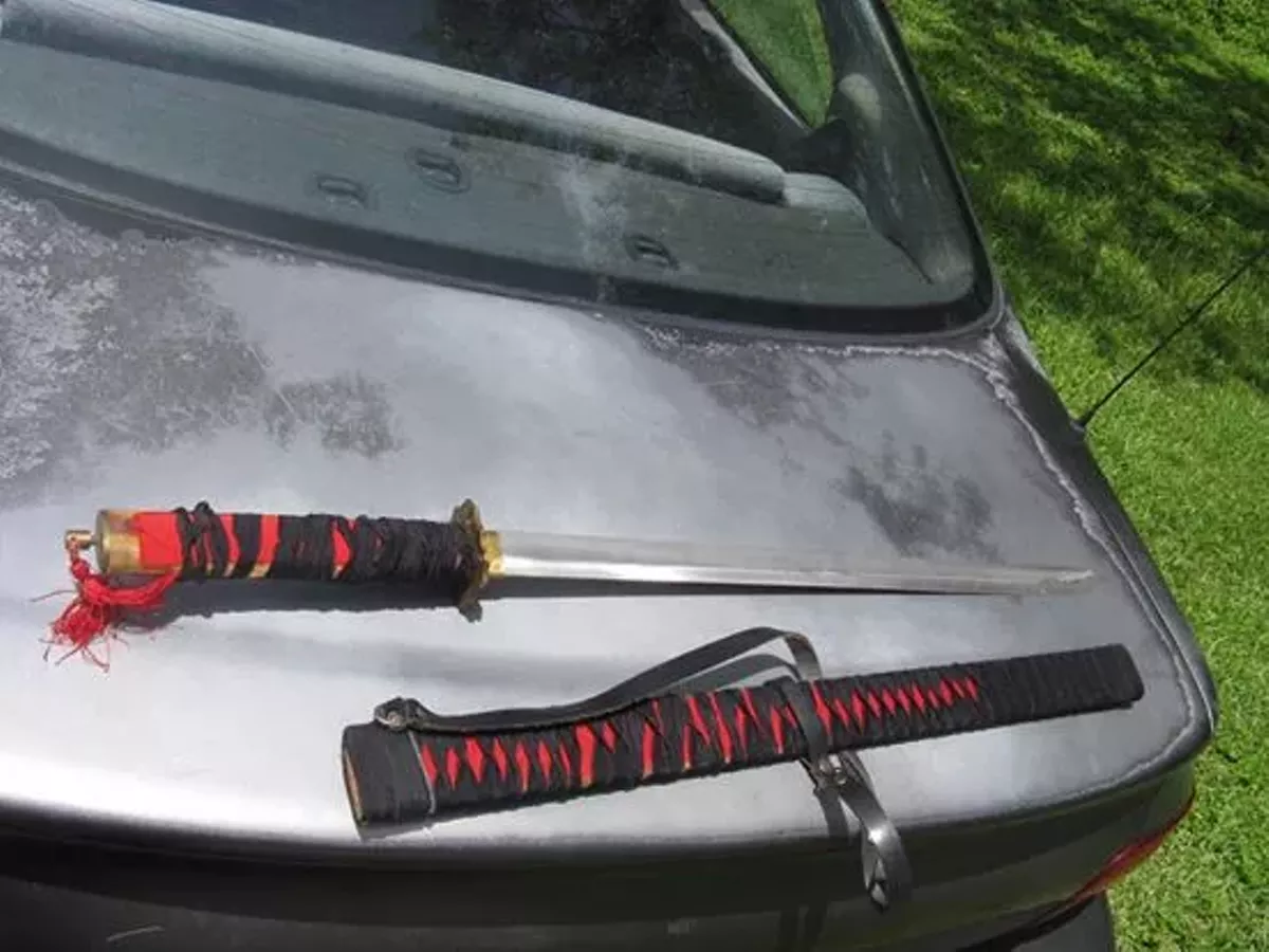 Eventually the road opened up to two lanes and they were able to pass Seymour, who then proceeded to hit the back of their car with the left front bumper of his vehicle. Both parties then pulled over and exited their vehicles, and this is when an angry Seymour allegedly produced a 25-inch samurai sword and declared he was going to kill them both, said officials.